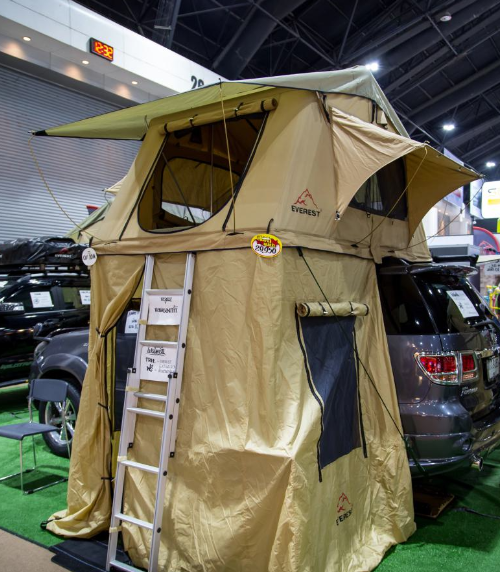 The vehicle-mounted tent is fully equipped (including supports, fixing ropes, ground anchors, ladders, etc.) III. Usage Notes 1. Safety at all times: When entering or exiting through the ladder, ensure the ladder is stable and avoid vigorous shaking inside the tent. 2. Interior arrangement: You can place sleeping bags, small luggage, etc., but do not overfill to avoid excessive load on the tent. 3. Ventilation and moisture prevention: Open the ventilation window of the tent at appropriate times to maintain air circulation inside and prevent condensation from accumulating; close the windows when it rains and check the waterproofing. IV. Storage Steps 1. Clean inside: Remove all items, shake off the dust and debris inside the tent. 2. Remove reinforcement parts: Remove the anchor stakes, untie the windproof ropes, fold up the ladder and secure it. 3. Fold the tent: - First, gather the frame and fold it in the reverse order of installation, be careful not to forcibly pull the fabric. - Slowly compress and fold the main body of the tent into the storage state, expel the internal air, tighten the binding straps, and ensure it is neatly stored. 4. Secure storage: If it is detachable, remove the tent and store it properly; for the integrated type, directly fix it on the roof to avoid loosening during driving.