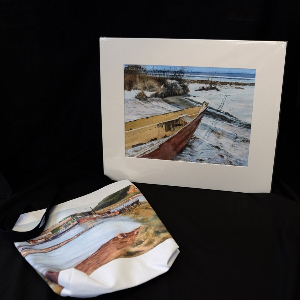 From the late Jac Tilton comes a Mississippi-themed combination. The original, matted watercolor is 15 x 12 inches and depicts the Mississippi backwaters in winter. The 14-inch, double-stitched canvas bag depicts the iconic O'Leary's fishing barge near the Dubuque Lock & Dam. Jac Tilton was a lifelong creative and beloved art educator in Galana, where he started his career. Although Jac left teaching in the 1980s, he continued to encourage and take the time to help and guide aspiring artists. This legacy will live on through the Jac Tilton Student Gallery at the Galena Center for the Arts. Artist Statement: Many of my watercolors result from my attraction to old or out-of-the-way places and subjects. I'm attracted to these subjects not from a sense of nostalgia but because of the effect that the process of existence imparts to them. The results of their use, abuse, neglect, or abandonment make for very interesting subject matter. Items can be collected after you check out, after the live auction. If you are not attending the Gala, you may pick up your items at The Galena Center for the Arts.